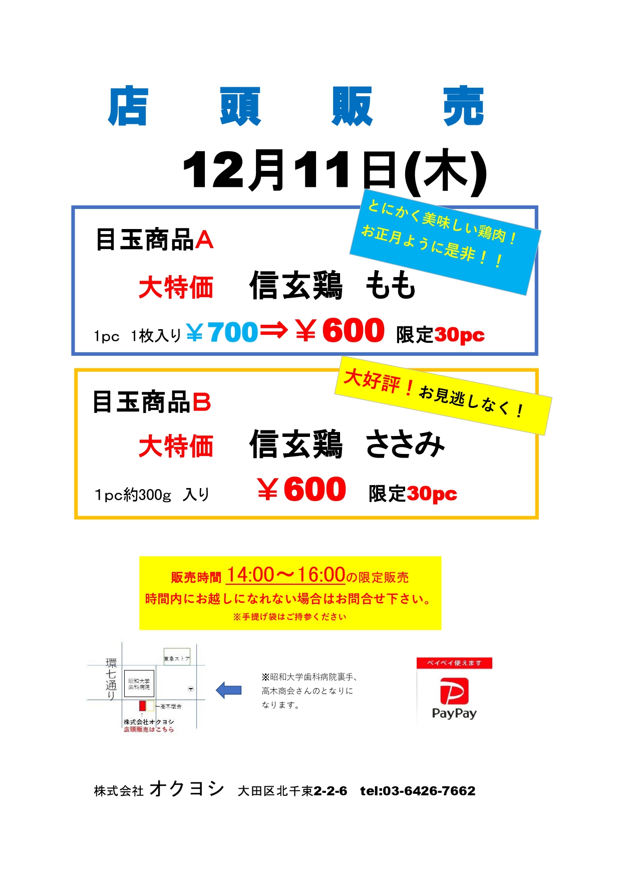 店頭販売のご案内 [開催日:2025年12月11日(木)]