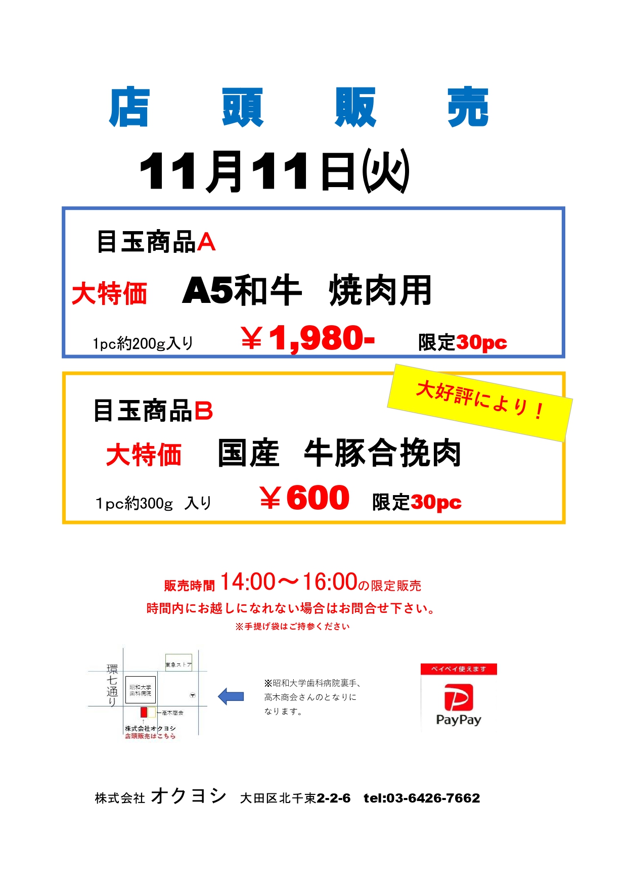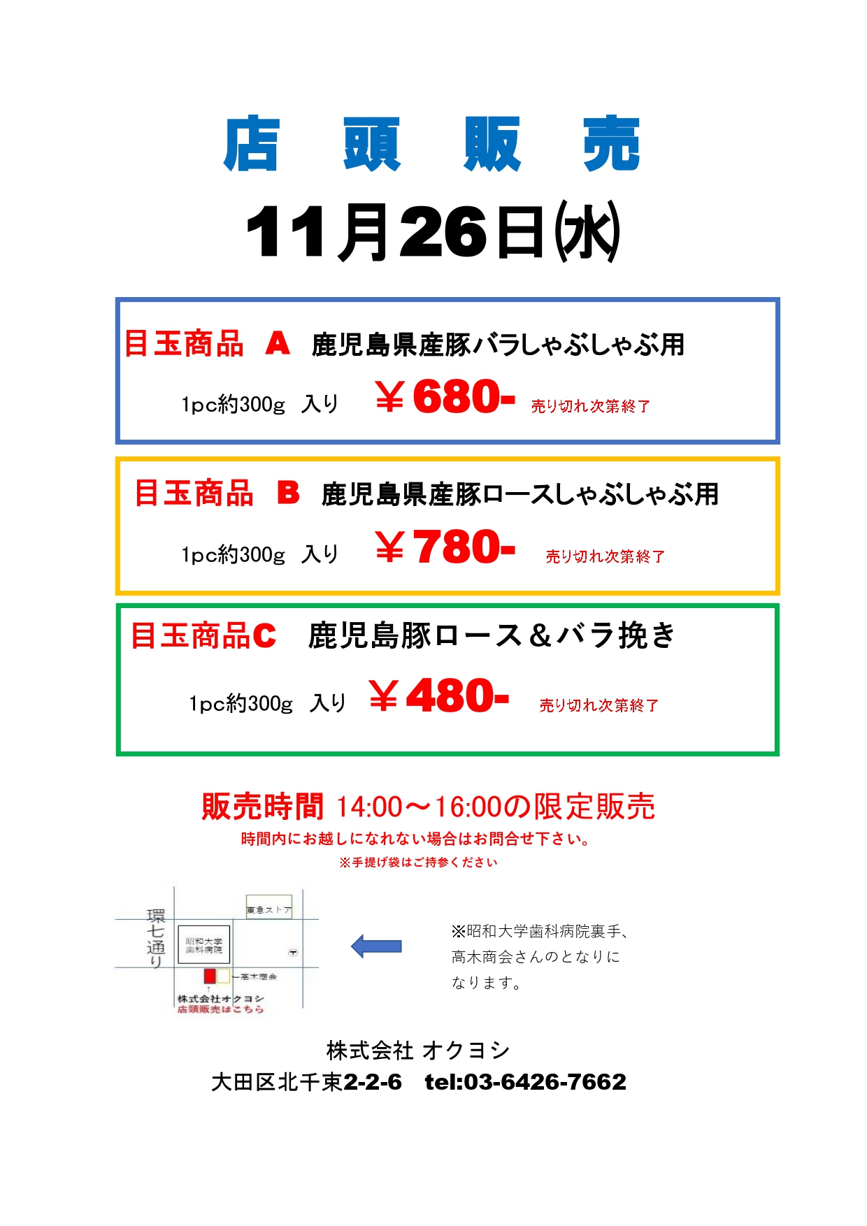 オクヨシ店頭販売のご案内です。